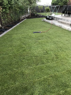 Fertigrasen in Bahnen verlegen, abwalzen und bewässern